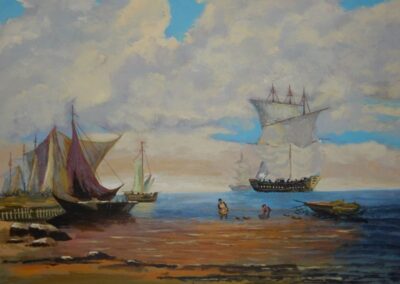 I attended the Liverpool School of Art where I developed my skills in drawing and painting. Then off to London and worked with different marketing agencies.  The peak of my career came when I joined the world-famous Saatchi & Saatchi brothers agency. My work is in acrylic and watercolour.  Subjects are mainly sea and landscapes of Yorkshire.