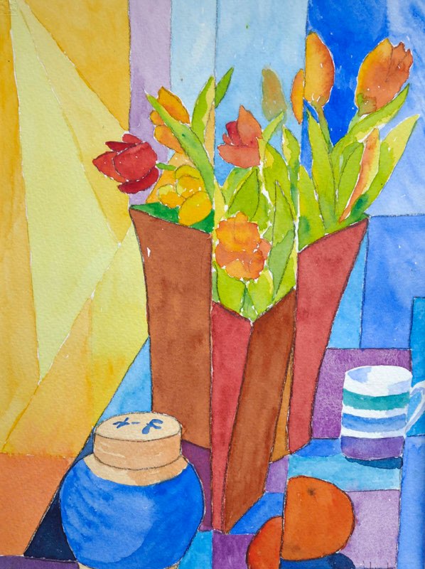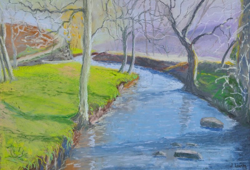 Jan did A-level art at school but had an extended ‘holiday’ due to family commitments. She picked up her brushes again and joined Leven Art around 2000. She paints in watercolour, pastel, and acrylics.