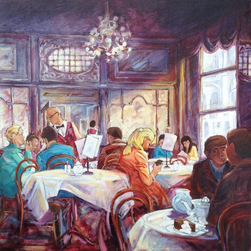 Viennese Café. Oil on canvas. 50 x 50 cm. £395 framed.