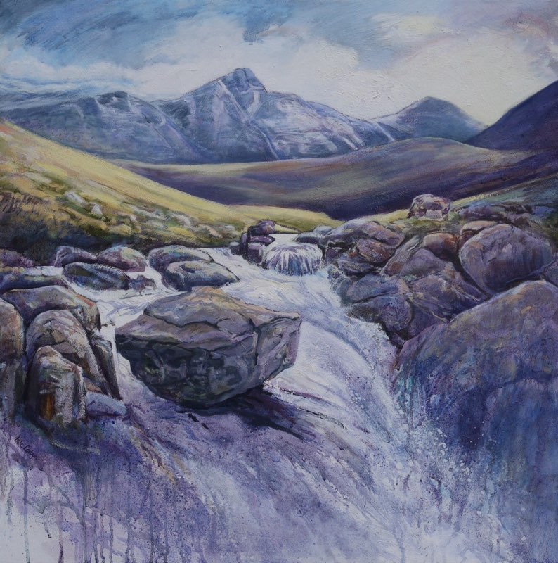 Quinag from the Unapool Burn. Oil on canvas. 60 x 60 cm. £395 framed.