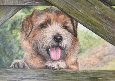 Vicky Tucker has been self employed as an artist since 2007. Having trained as a textile artist initially at Nottingham Trent University, Vicky returned to her passion for drawing and painting, producing pictures for family and friends over the years before taking the plunge and starting her own business. Specializing in animal portraits, Vicky works mainly in acrylics and pencil, she has worked with many customers, and animals, on a private commission basis since 2007. Juggling a teaching job and two young children, as well as her self employed business certainly keeps Vicky busy, but undeterred she is currently working on a collection of landscape pieces on the North Yorkshire Moors and the Lake District, two of her favourite places to spend time with her family.