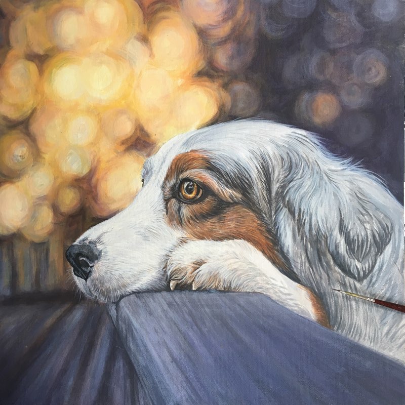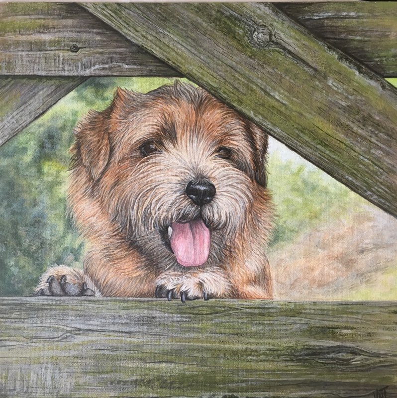 Vicky Tucker has been self employed as an artist since 2007. Having trained as a textile artist initially at Nottingham Trent University, Vicky returned to her passion for drawing and painting, producing pictures for family and friends over the years before taking the plunge and starting her own business. Specializing in animal portraits, Vicky works mainly in acrylics and pencil, she has worked with many customers, and animals, on a private commission basis since 2007. Juggling a teaching job and two young children, as well as her self employed business certainly keeps Vicky busy, but undeterred she is currently working on a collection of landscape pieces on the North Yorkshire Moors and the Lake District, two of her favourite places to spend time with her family.